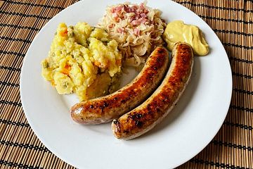 Super leckere Bratwurst mit Majoran, ohne Maggi. Meine allererste und es wird nicht die letzte sein. LG Thymiane