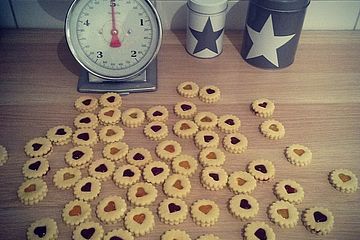 Habe die Füllung mit Erdbeer- und Aprikosenmarmelade gemacht, da ich bereits mit Johannisbeergelee gefüllte Linzer Kekse hatte. Hervorragend!