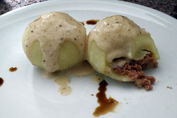 Habe eben "Gefüllte Klöße" gegessen, die ich fertig in einer Metzgerei im Hunsrück gekauft habe. Waren wirklich lecker!! Die Metzgerei-Verkäuferin hat mir gesagt, dass sie dort mit Apfelmus gegessen werden. Habe daher auch Apfelmus dazu ausprobiert, ist zwar ganz gut, aber bestimmt gewöhnungsbedürftig. Werde Deine Klöße demnächst ausprobieren. LG Elvira