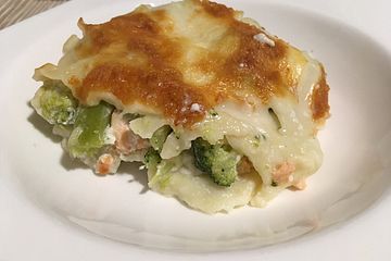 Hallo! Die Lasagne hat lecker geschmeckt. Ich habe frischen Lachs verwendet und diesen gut gewürzt. Ich habe jeweils 250 ml Sahne & Milch und 400 ml von dem Garwasser für die Sauce verwendet. Ich habe den Brokkoli allerdings in Gemüsebrühe gegart. Vielen Dank für das Rezept! LG, Estefania
