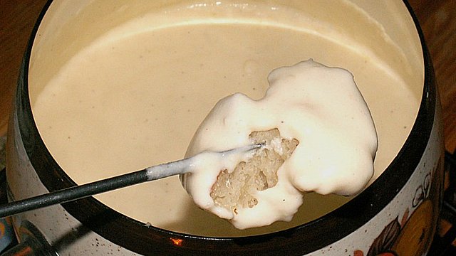 Dazu reicht man Weißbrotwürfel zum Tunken. Wer mag, nimmt auch noch Obststücke, z.B. Weintrauben. Gut passt außerdem ein Salat, z.B. Schichtsalat. Als Getränk eignet sich dunkles Bier am besten.