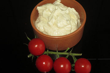 das ist mal ein toller Dip! Ich habe weniger Knoblauch genommen, dafür mehr Pfeffer. Der Trick ist die kalte! Milch. Es hat keine 10 Sekunden gedauert. Vielen Dank!